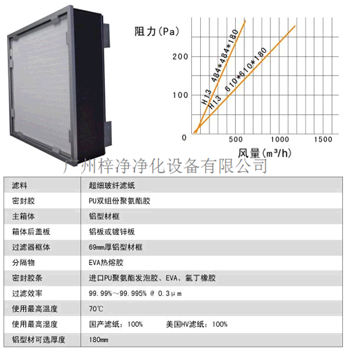 2、過濾效率:H13-H14,H13:99.97-99.99%@0.3μm、H14:99.995-99.999%@0.3μm(MPPS);