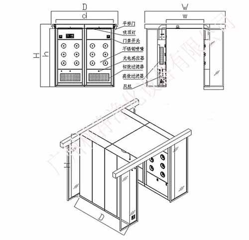 4、模塊式結(jié)構(gòu):風(fēng)淋室箱體采用模塊化設(shè)計(jì)方案,可以按實(shí)際需要拼裝成各種長度的風(fēng)淋尺寸。一臺風(fēng)淋室由一節(jié)或多節(jié)風(fēng)淋單元組成,對于大體積的風(fēng)淋設(shè)備,可分拆成多個模塊,使得生產(chǎn)、運(yùn)輸、安裝特別方便、快捷;